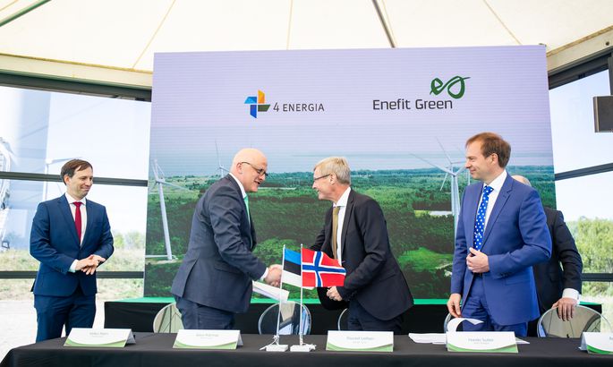 Eesti Energia周二在Paldiski Wind Park與Nelja Energia簽署了一項承諾協(xié)議。左起:VeikoRäim,AavoKärmas,Thorleif Leifsen和Hando Sutter