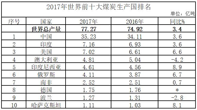 2017年世界煤炭產(chǎn)量77.3億噸
