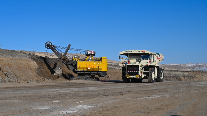 在扎哈淖爾露天煤礦生產現場,15臺120噸級純電動輪礦用車正在有序作業(yè)。
