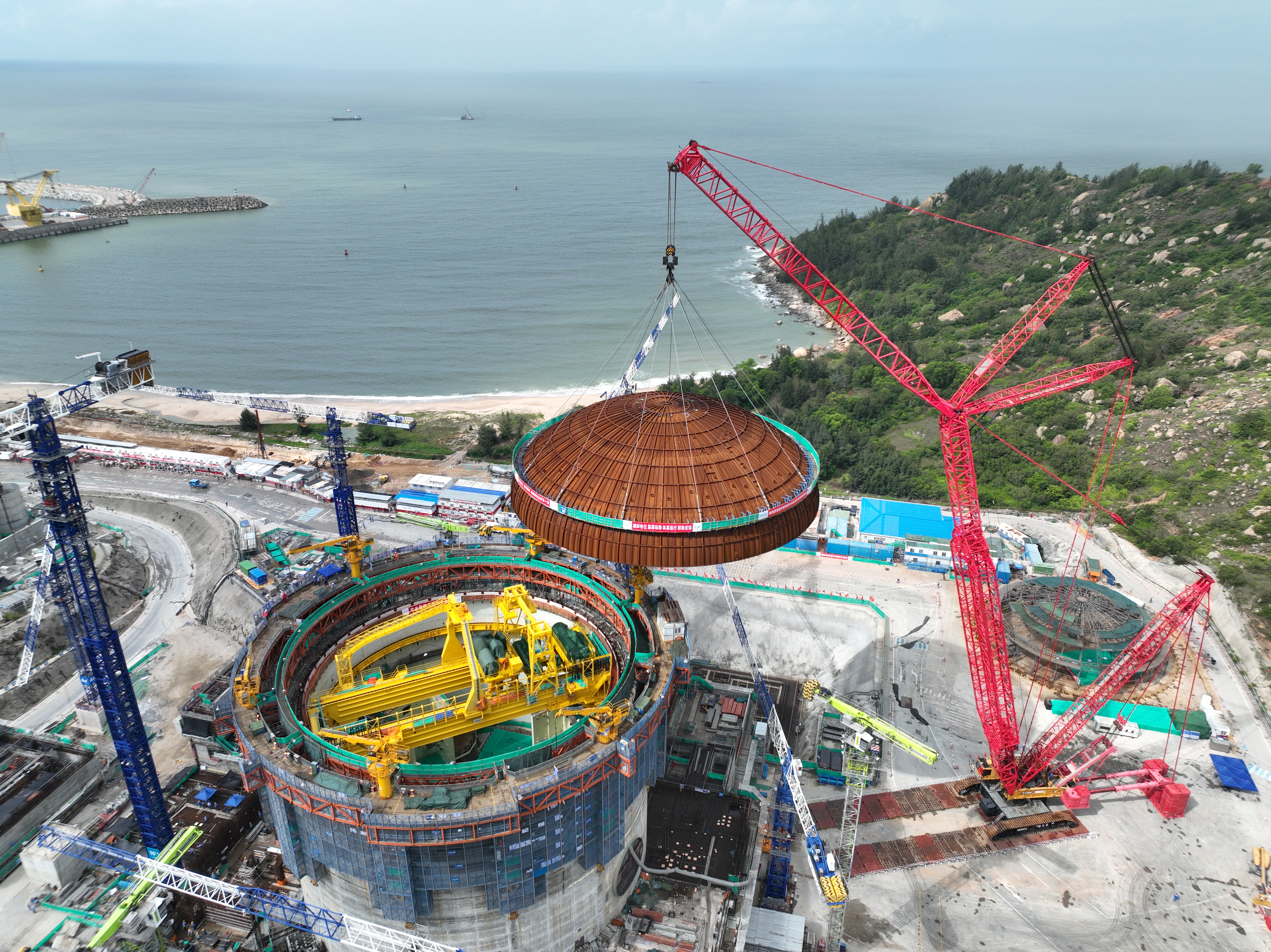 中廣核廣東陸豐核電6號(hào)機(jī)組穹頂?shù)跹b現(xiàn)場(chǎng)