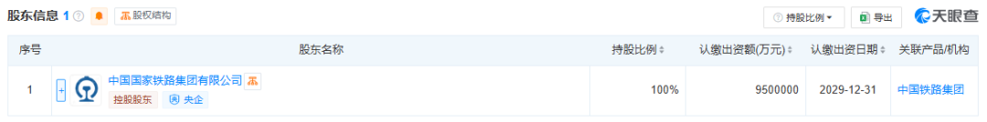 股東信息顯示,該公司由中國國家鐵路集團(tuán)有限公司全資持股。