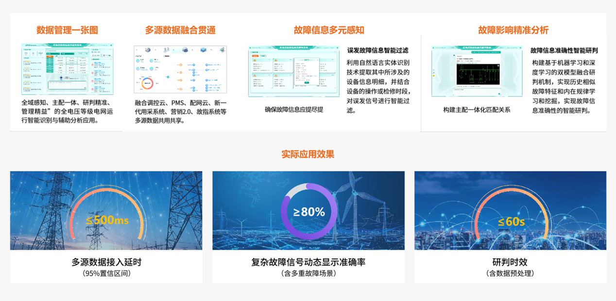 該系統(tǒng)深度融合配網(wǎng)多系統(tǒng)數(shù)據(jù)與AI大模型分析能力,實(shí)時(shí)接入主網(wǎng)調(diào)控、用采、故指、配自等多源異構(gòu)數(shù)據(jù),經(jīng)標(biāo)準(zhǔn)化處理與統(tǒng)一分析,全面感知電網(wǎng)運(yùn)行狀態(tài)。借助AI大模型算力,故障點(diǎn)定位精度超80%,60秒內(nèi)可完成研判;還能基于結(jié)果智能生成復(fù)電路徑參考、檢修優(yōu)先級(jí)排序等處理建議,為運(yùn)維人員提供決策依據(jù),推動(dòng)配網(wǎng)故障處置從“被動(dòng)響應(yīng)”轉(zhuǎn)向“主動(dòng)決策”。