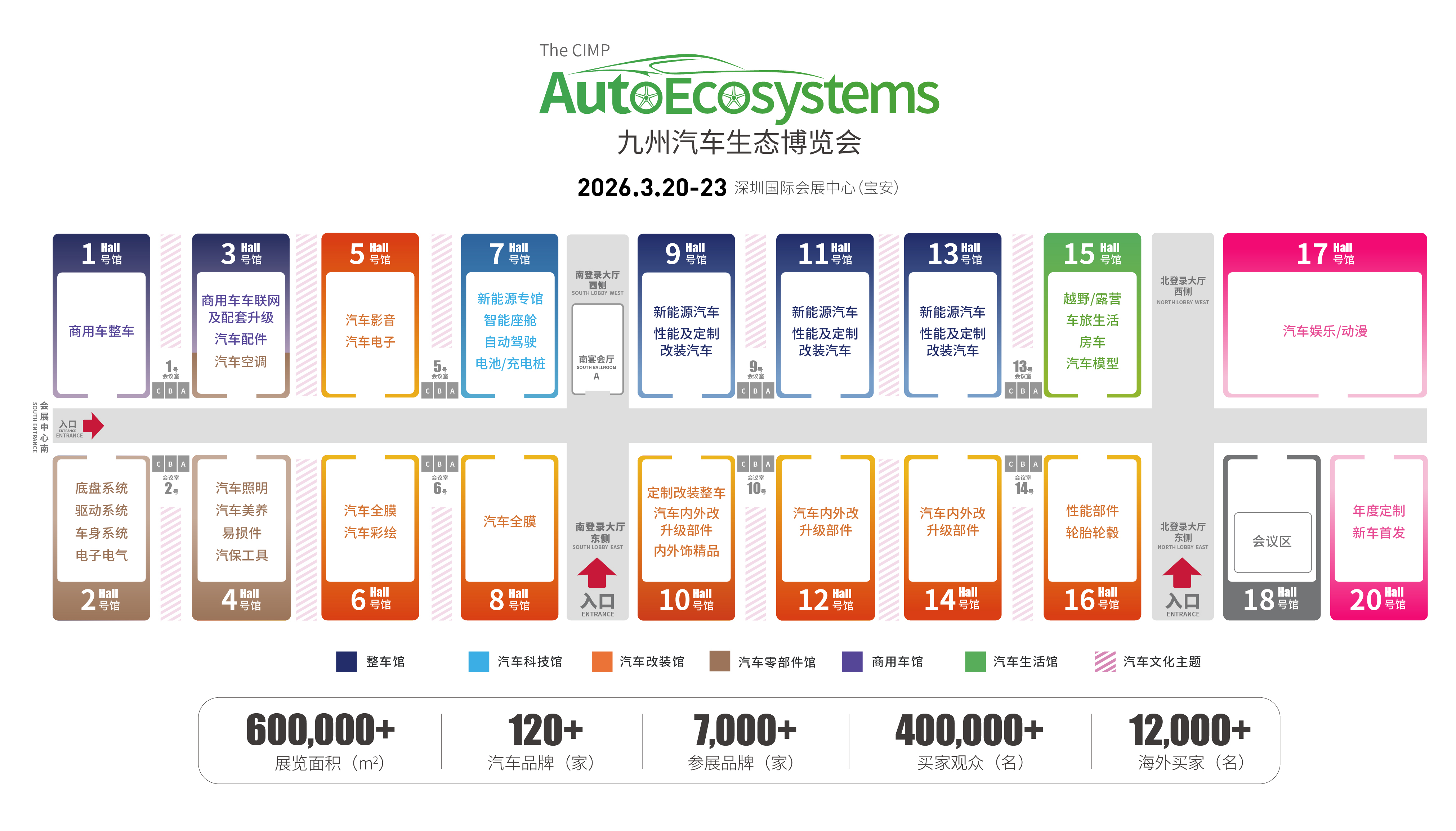 作為全球第一個(gè)汽車全產(chǎn)業(yè)鏈生態(tài)展貿(mào)平臺(tái),九州汽車生態(tài)博覽會(huì)全面涵蓋乘用車與商用車市場,已成為全球整車發(fā)布、汽車科技、汽車零部件、汽車改裝、汽車文化的新產(chǎn)品、新技術(shù)年度首發(fā)平臺(tái)。2026年展會(huì)規(guī)模擴(kuò)容至60萬平方米,匯聚全球7000+優(yōu)質(zhì)品牌及超40萬名專業(yè)觀眾。