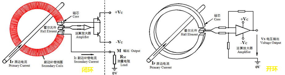 在選用霍爾電流傳感器的方案上也有區(qū)別。根據(jù)工作原理的不同一般分開環(huán)和閉環(huán)。