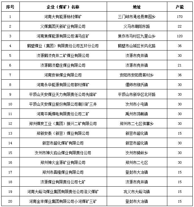 附:河南省2018年煤炭行業(yè)化解過剩產(chǎn)能關(guān)閉退出煤礦名單
