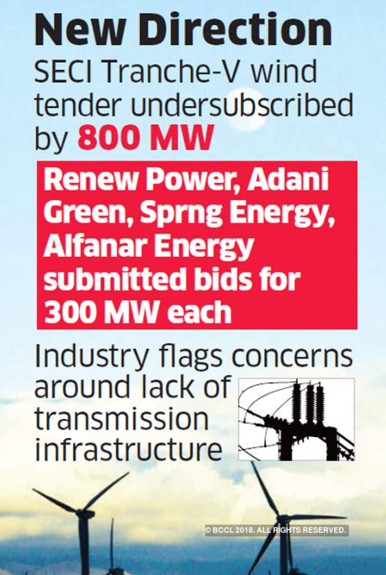四個(gè)可再生能源開(kāi)發(fā)商 - Renew Power,Adani Green Energy,Sprng Energy和Alfanar Energy -周二提交了300兆瓦容量的技術(shù)報(bào)價(jià),占印度太陽(yáng)能公司(SECI)總?cè)萘康?,200兆瓦(SECI))。行業(yè)觀察人士表示,缺乏應(yīng)對(duì)措施不是因?yàn)閷?duì)風(fēng)電行業(yè)缺乏興趣,而是擔(dān)心是否有足夠的基礎(chǔ)設(shè)施可用于撤離通過(guò)這些項(xiàng)目產(chǎn)生的電力。