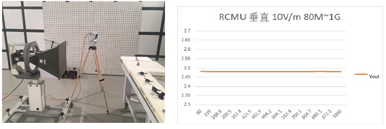 通過對MAGTRON公司的RCMU系列漏電電流傳感器進行測試,其實際電磁輻射抗擾度在垂直10V/m場強,80M~1GHz輻射頻率中輸出依然能夠保持穩(wěn)定,不會影響它的檢測。