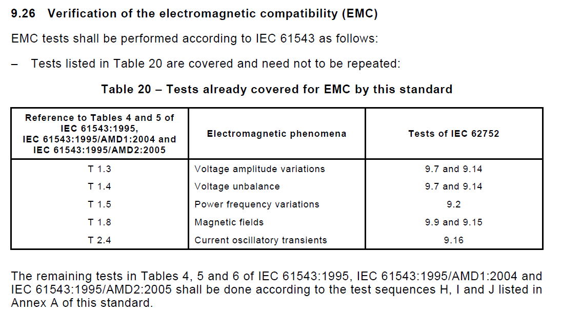 圖2 IEC 62752-2016中關于EMC的測試要求
