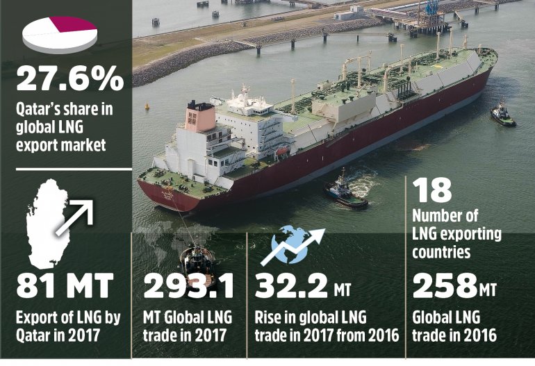 卡塔爾于2017年保留了世界上最大的液化天然氣(LNG)出口國(guó)之冠。該國(guó)去年出口了8100萬(wàn)噸(MT),使其在全球液化天然氣貿(mào)易中保持市場(chǎng)領(lǐng)先地位,占27.6%。 ,國(guó)際天然氣聯(lián)盟發(fā)布的“2018年世界液化天然氣報(bào)告”稱。