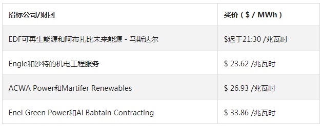 然而,值得注意的是,EDF和Engie并不是因為他們出價最低而無法保證偏好。“REPDO表示,公布的開標(biāo)結(jié)果不代表投標(biāo)人的排名或投標(biāo)人對項目RFP要求的遵守情況,也不構(gòu)成REPDO對投標(biāo)過程結(jié)果的決定,”沙特阿拉伯的MEIM在一份聲明中表示。