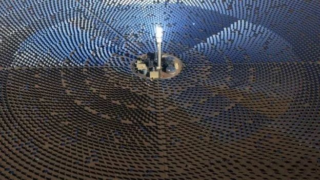 Aurora項(xiàng)目預(yù)計(jì)將為9 萬戶家庭供電,預(yù)計(jì)每年可生產(chǎn) 500GW的電力,排碳量也可減少200 萬噸。鏡場將布滿12,000 面塔式定日鏡,利用鏡子聚集太陽光至中央220米高的吸熱塔中,其內(nèi)部熔鹽(molten salt)將被加熱到攝氏565度。