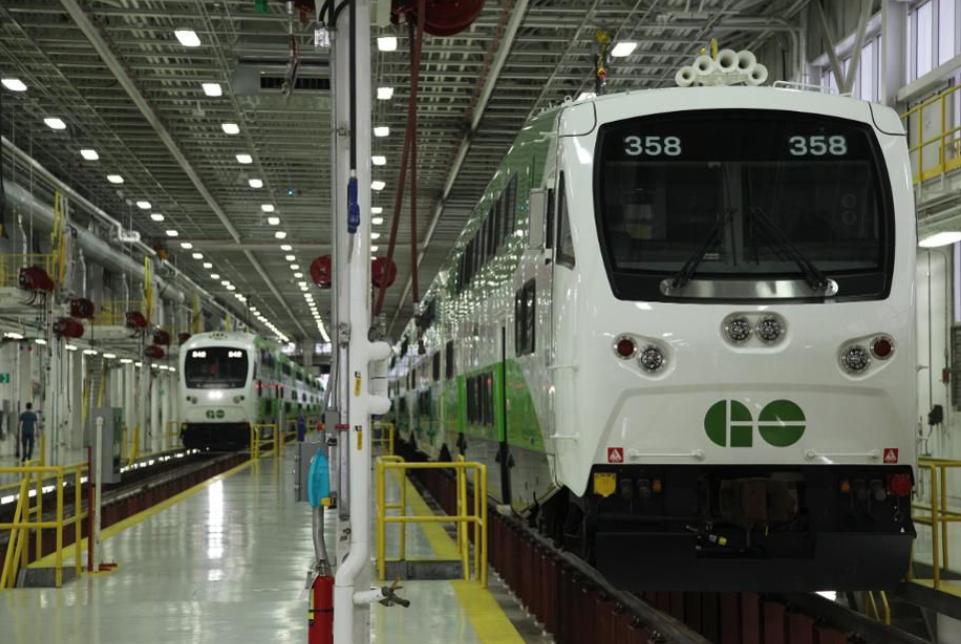 在加拿大安大略省怡陶碧谷的GO Transit Willowbrook鐵路維修設(shè)施中的列車。加拿大設(shè)想了一個(gè)綜合能源系統(tǒng),其中小型模塊化核反應(yīng)堆不僅可以生產(chǎn)動(dòng)力,還可以生產(chǎn)汽車,卡車和類似火車的氫燃料。(攝影:Creative Touch Imaging Ltd./NurPhoto via Getty Images)