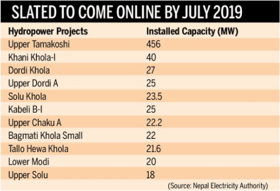計(jì)劃上線的水電站是456兆瓦上Tamakoshi,40兆瓦Khani Khola-I,27兆瓦Dordi Khola,25兆瓦上Dordi A,23.5兆瓦Solu Khola,25兆瓦Kabeli BI,22.2兆瓦上Chaku A和22兆瓦巴格馬蒂科拉小,等等。