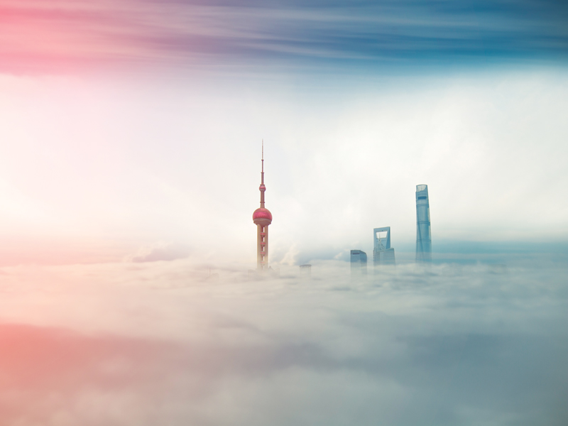 商業(yè)建筑沉浸在中國上海的霧中。盡管中國是世界上最大的溫室氣體排放國,但它現在正在引領綠色能源發(fā)展