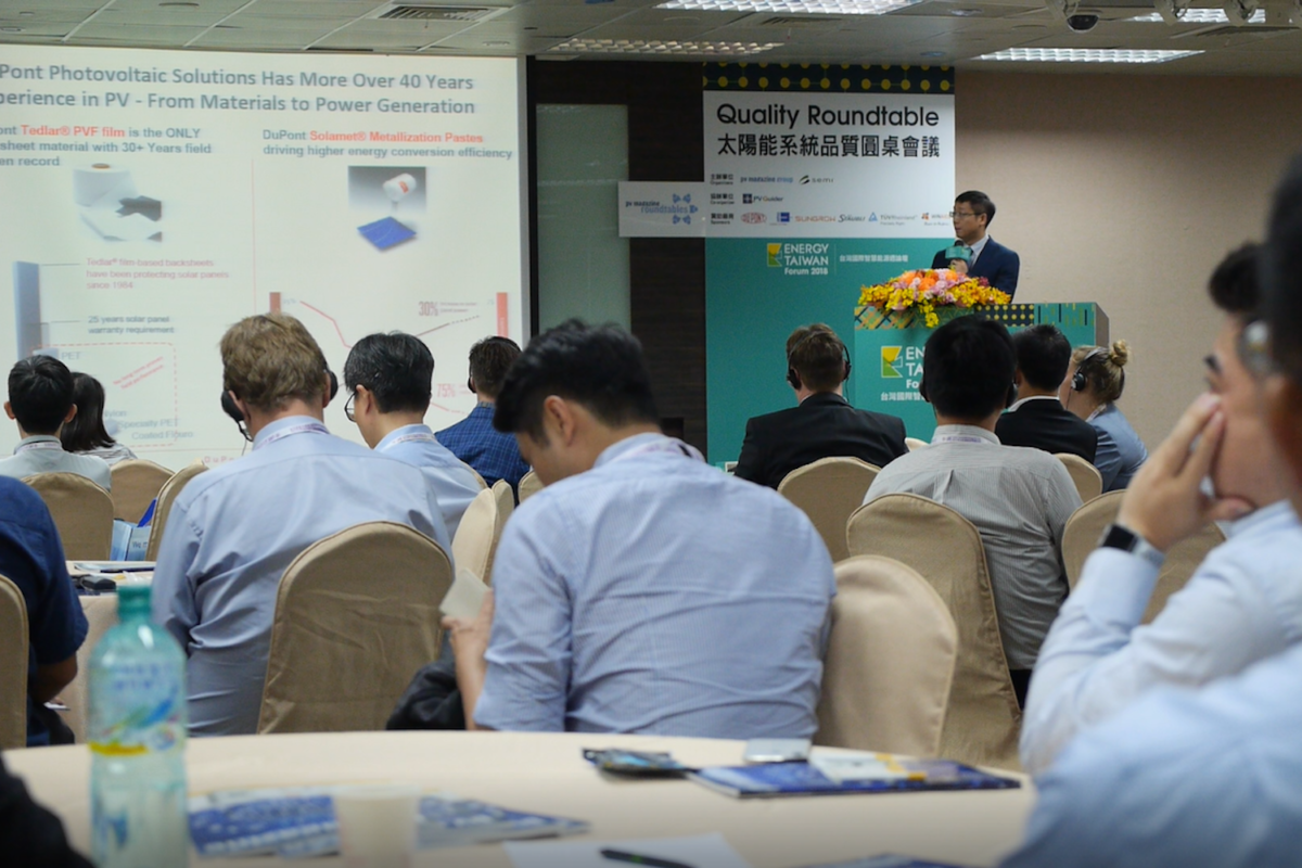 胡宏杰,中國光伏下游技術(shù)領(lǐng)導(dǎo)者和市場開發(fā)經(jīng)理,杜邦光伏和先進(jìn)材料,在光伏雜志的臺北Qualtiy圓桌會議上。
