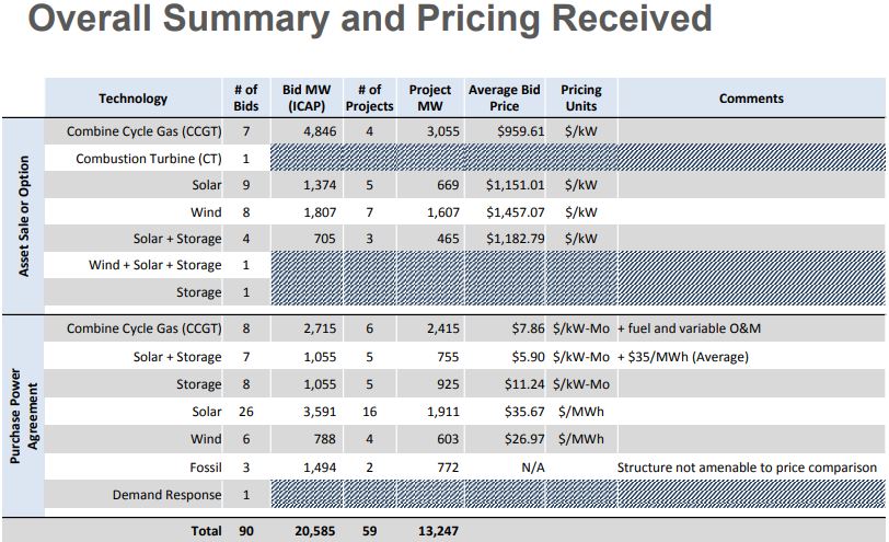 其中26個(gè)太陽能電力單位的總?cè)萘拷咏?.6 GW-AC,平均為3.57¢/ kWh。太陽能+存儲項(xiàng)目,僅超過1 GW-AC,包括上面的標(biāo)準(zhǔn)PPA價(jià)格,并增加了每月5.90美元/ kW的容量支付。