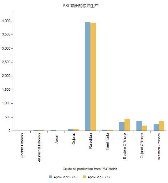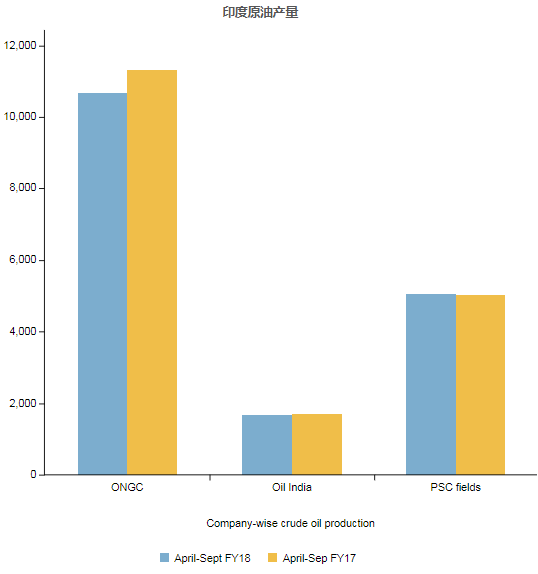 印度本財(cái)政年度前六個(gè)月(4月至9月)的累計(jì)原油產(chǎn)量下降3.42%至17,409.44 TMT,而去年同期產(chǎn)量為18025 TMT。