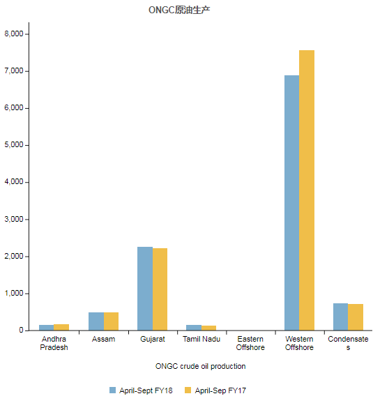 國(guó)家最大的石油和天然氣生產(chǎn)商,石油和天然氣公司(ONGC)的原油產(chǎn)量在9月份下降了7.21%至1,711.27 TMT,而去年同期的產(chǎn)量為1,844.25 TMT。