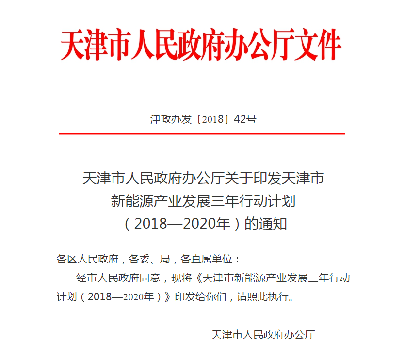 天津市新能源產(chǎn)業(yè)發(fā)展三年行動計劃