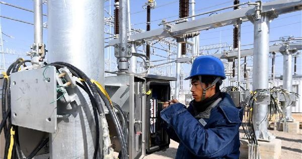 上圖為國家電網(wǎng)陜西省電力公司的工作人員在陜北風(fēng)電基地750千伏集中送出工程定靖750千伏變電站進行二次回路查線。