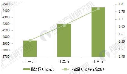 圖表7:中國鋼鐵領(lǐng)域節(jié)能量與相應(yīng)投資額分析與預(yù)測(單位:億噸標(biāo)準(zhǔn)煤,億元)