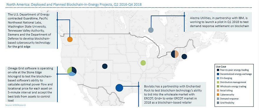 在美國,有關(guān)區(qū)塊鏈應(yīng)用能源領(lǐng)域的諸多嘗試都鮮少涉及能源設(shè)施領(lǐng)域。GTM Research預(yù)測,那些在2017年開始對區(qū)塊鏈技術(shù)開展調(diào)查的一些能源設(shè)施公司將在2018年規(guī)劃甚至部署相應(yīng)的試點(diǎn)項目。