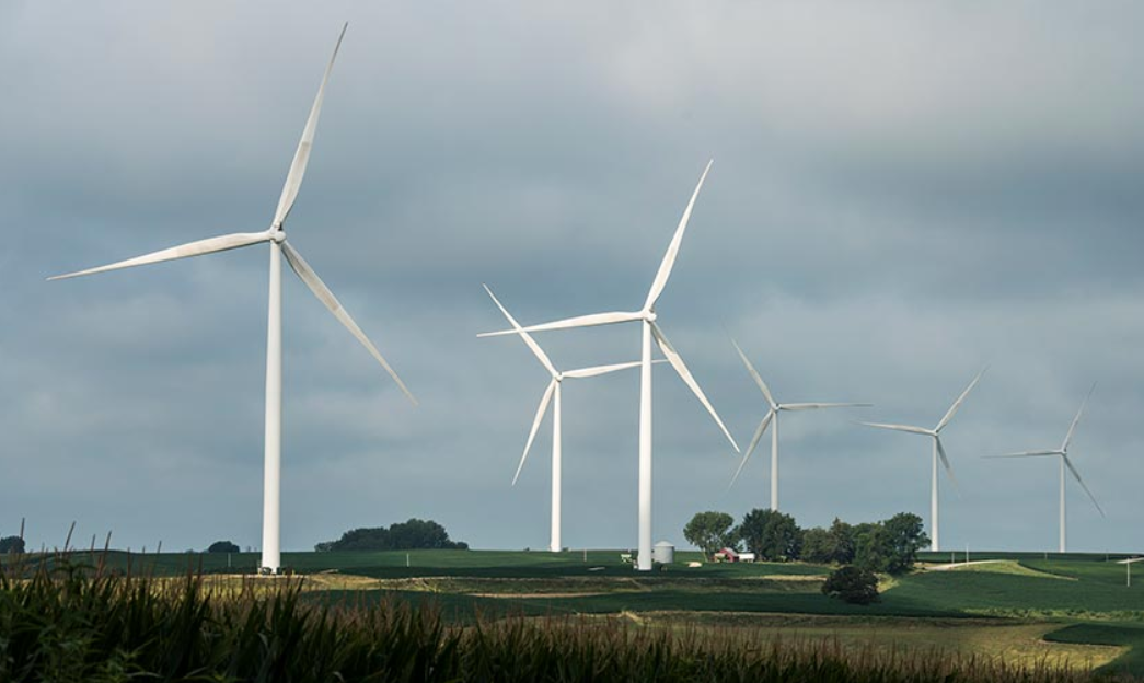 愛荷華州的這家酒店將風(fēng)力渦輪機(jī)延伸到地平線上。美國國家可再生能源實驗室正在提供海量數(shù)據(jù),以幫助確定風(fēng)機(jī)的安裝位置,例如愛荷華州的風(fēng)機(jī)。(Dennis Schroeder攝/ NREL)
