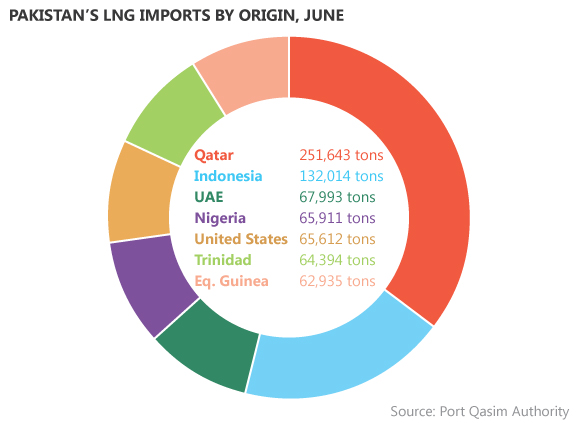 圖表顯示巴基斯坦LNG原產(chǎn)地進口情況