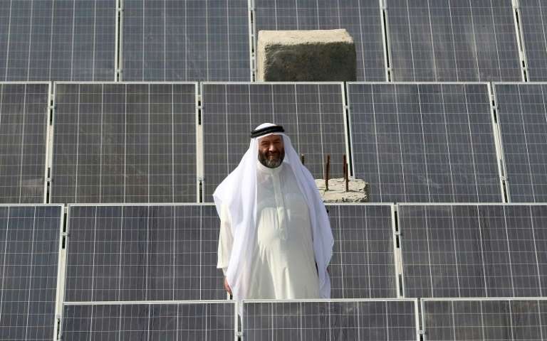 一名男子矗立在安曼南部Hamdan al-Qara清真寺屋頂?shù)?40個(gè)太陽系中